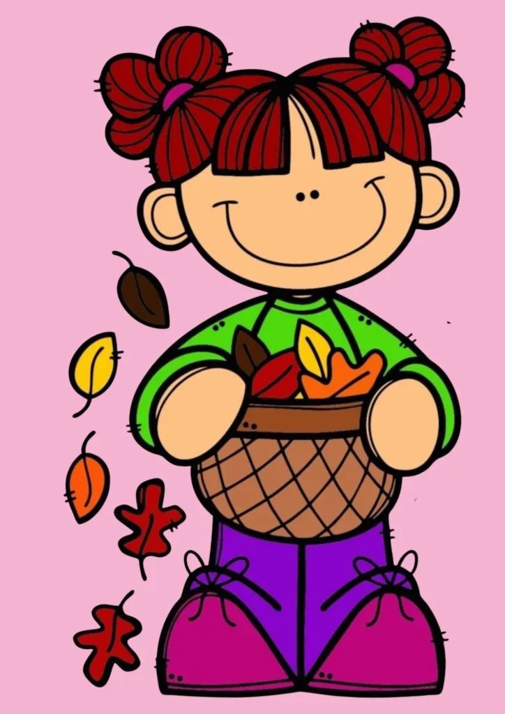 The first piece in our collection is an adorable girl holding a basket full of fall leaves. π This cheerful design is perfect for adding a touch of autumn joy to your classroom resources. Teachers can use it on worksheets, bulletin boards, or even as a coloring page for younger students. The playful basket of colorful leaves makes it a wonderful way to celebrate the season and bring cozy fall vibes into your lessons.