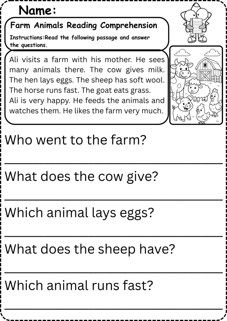 5. Farm Animals Reading Comprehension: