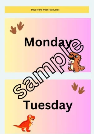 This Package includesDinosaur themed Days of the Week FlashcardsFormat:PDFInstant DownloadPrint them on a hard paper and laminate it .Have fun!As soon your payment is received you will be allowed to download the flashcards.