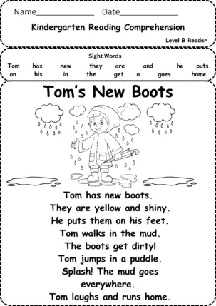 Free Reading Comprehension Kindergarten Level B “Tom’s New Boots”||Reading Comprehension Kindergarten