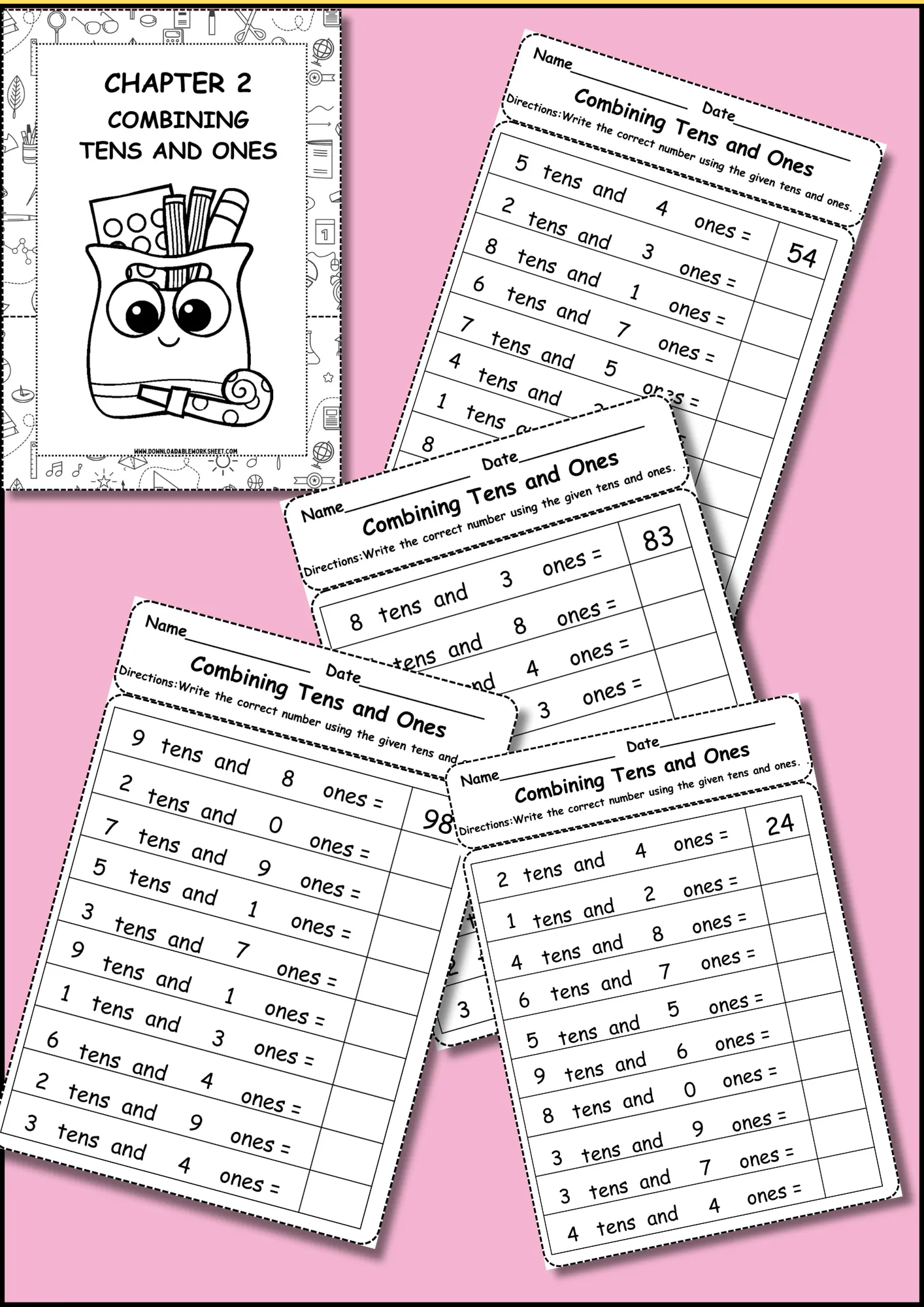 Mastering numbers has never been easier! Our Place Value Worksheets Bundle is a complete 8-chapter resource designed for Grade 1 students. This bundle takes learners step by step through every essential concept of place value, making math fun and engaging.